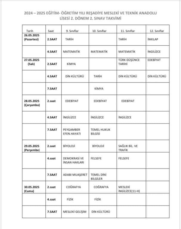 Ortak sınav takvimi. Tüm öğrencilerimize başarılar dileriz. Rehberlik servisi